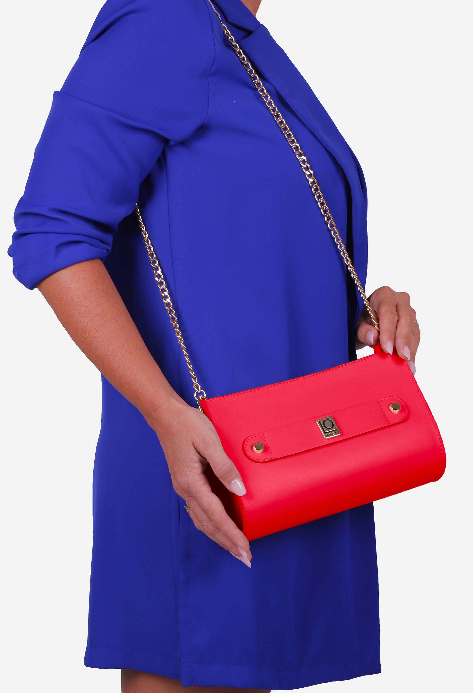 La pochette Alo' Posh in pelle color Geraneo è progettata per adattarsi a ogni occasione. Può essere indossata comodamente a spalla grazie alla tracolla di catena e alla rifinitura in pelle, oppure a mano, utilizzando il passante anteriore che funge da bracciale. Questo design innovativo non solo offre praticità, ma valorizza anche il tuo outfit, rendendolo perfetto per un aperitivo, una cena elegante o una cerimonia speciale.