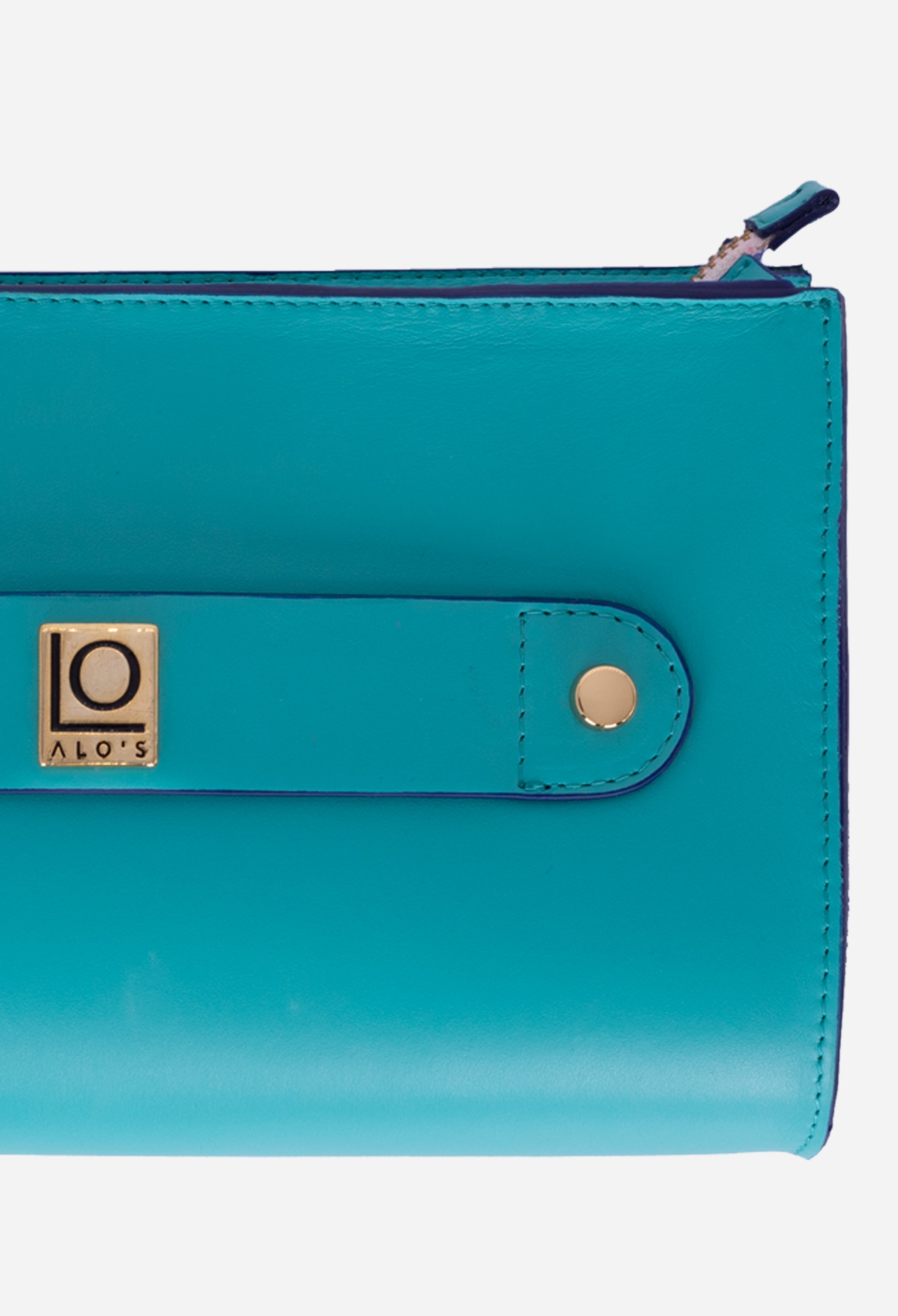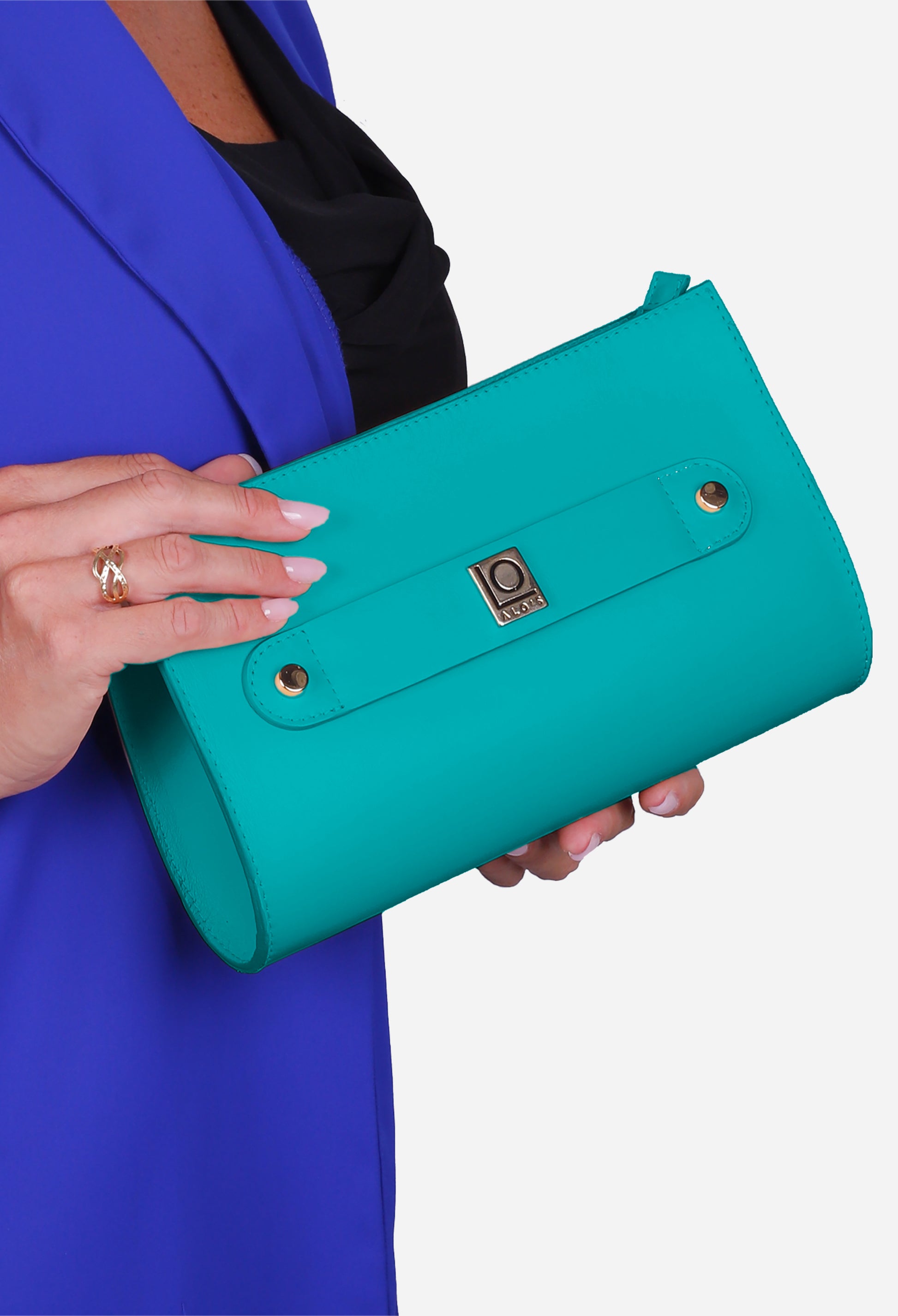 - Borsa in pelle Alo's Posh colore Turchese con dettagli oro